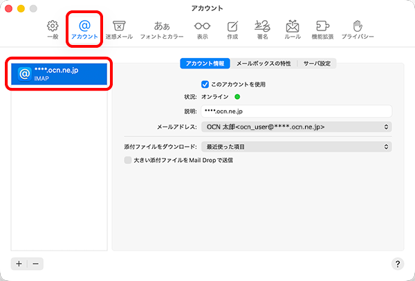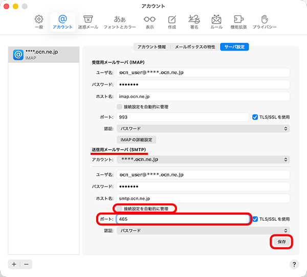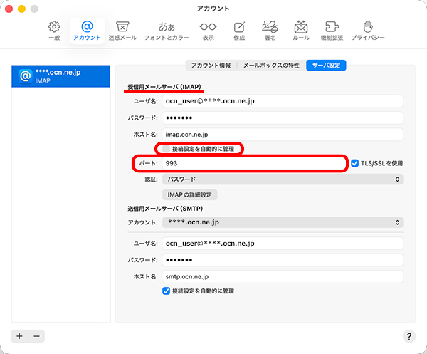 macOS TahoeにOCNのメールアドレスを新しくIMAPで設定する方法をご案内します。