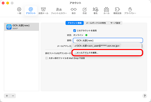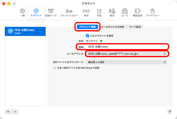 macOS TahoeにIMAPで設定したOCNのメールアドレスを変更する方法をご案内します。
