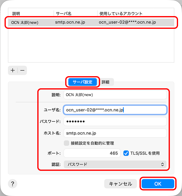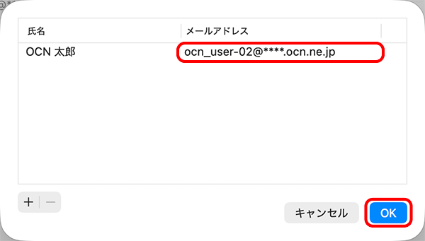 | ホスト名 | smtp.ocn.ne.jp と入力 |