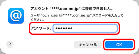 新しいメールパスワードを入力し、[OK]をクリックして完了です。