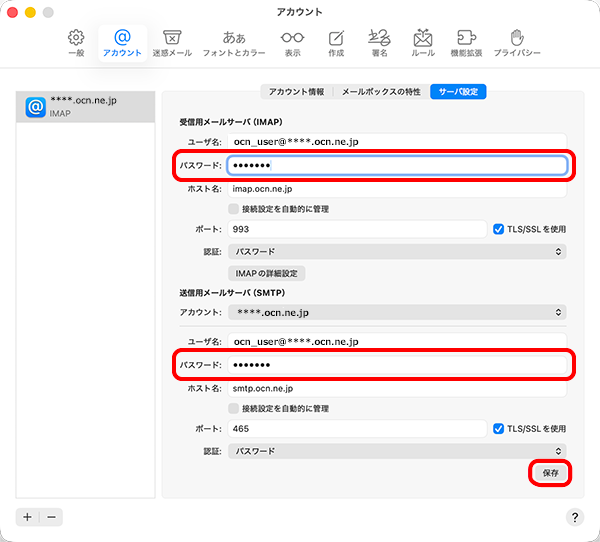 macOS TahoeにIMAPで設定したOCNのメールパスワードを変更する方法をご案内します。