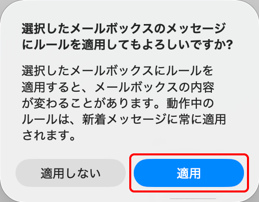 | 説明 | フィルターの説明を入力 ※画像では例として[迷惑フィルター]としています。 |