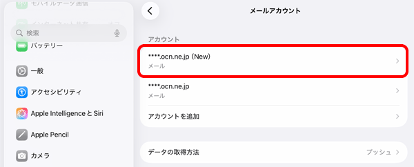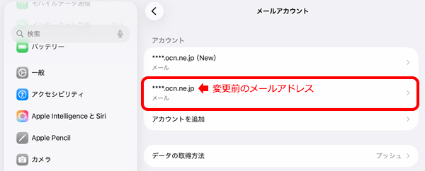 iPadOS 26の標準メールアプリで、POPで設定したOCNのメールアドレスを変更する方法をご案内します。