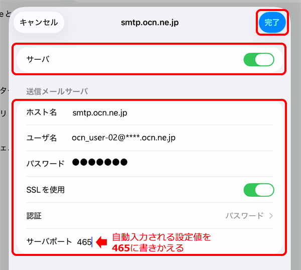 ※OCN会員登録証に記載の設定情報は古い場合がありますので、上記の表の値を入力してください。
