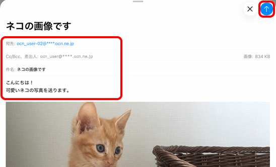 送信]をタップして完了です。