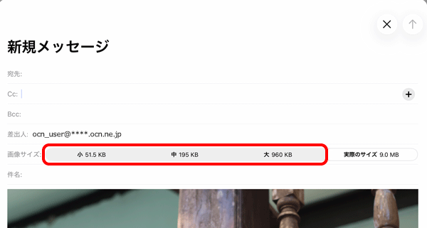 画像サイズを変更してもメールの送受信ができない場合は、以下のページへお進みください。
