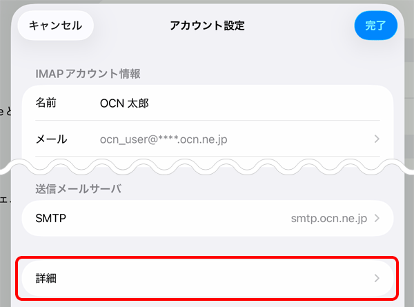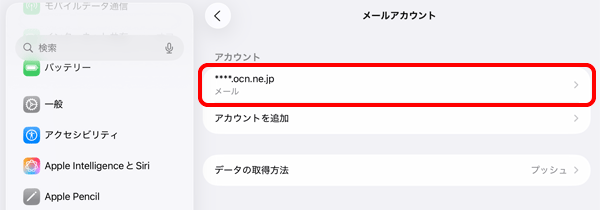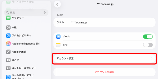 iPadOS 26の標準メールアプリで、OCNのメールアドレスの設定(IMAP)が正しいか確認する方法をご案内します。