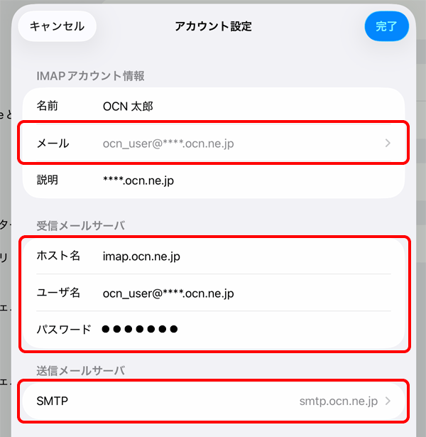 imap.ocn.ne.jp と入力 |