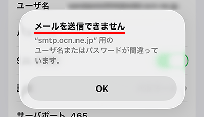 メールの設定に誤りがある可能性があります。