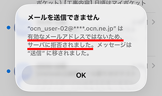 宛先のメールアドレスに誤りがある可能性があります。