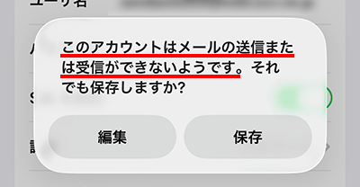 メールの設定に誤りがある可能性があります。