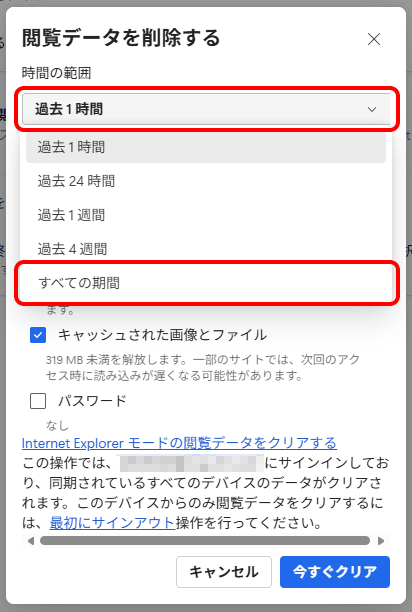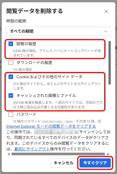 キャッシュを削除する際のご注意