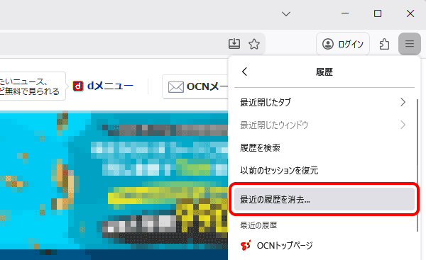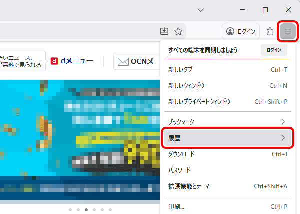 メニュー]-[履歴]をクリックします。