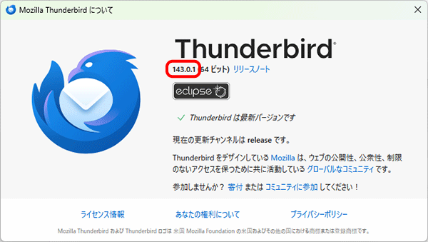 本手順ではThunderbird 143を使用しています。画面・アイコン・名称等はバージョンにより異なります。