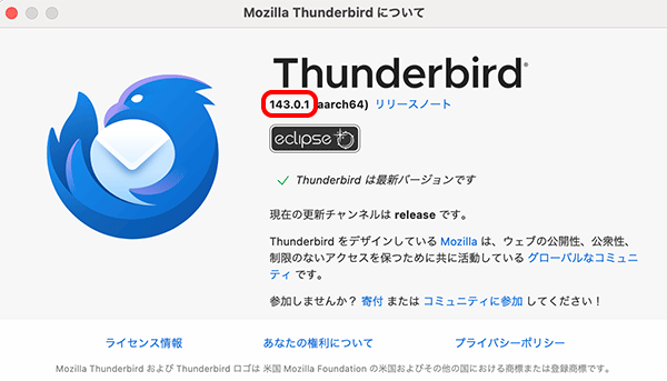 本手順ではThunderbird 143を使用しています。画面・アイコン・名称等はバージョンにより異なります。